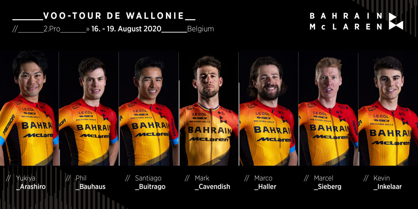 Team Bahrain McLaren line up for Tour de Wallonie: Mark Cavendish, Santiago Buitrago, Phil Bauhaus, Yukiya Arashiro, Marcel Sieberg, Marco Haller, Kevin Inkelaar