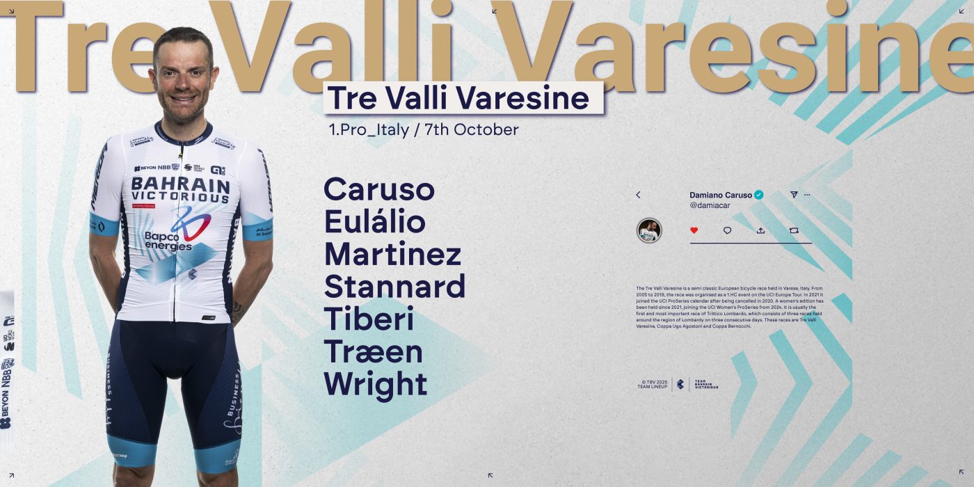 Bahrain Victorious continues its Italian campaign on Tuesday with the 104th edition of the Tre Valli Varesine, covering 200.3 km from Busto Arsizio to the traditional finish in Varese’s Via Sacco.
