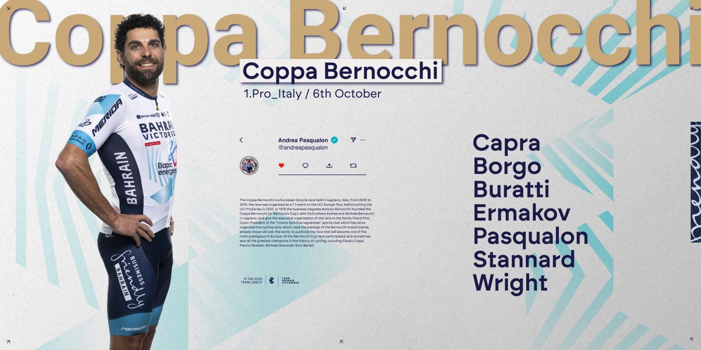 Now, Bahrain Victorious will return for the 106th edition, aiming to honour the race and fight for the best result possible in the finale with Fred Wright and Nicolò Buratti, both making their debut at Coppa Bernocchi.