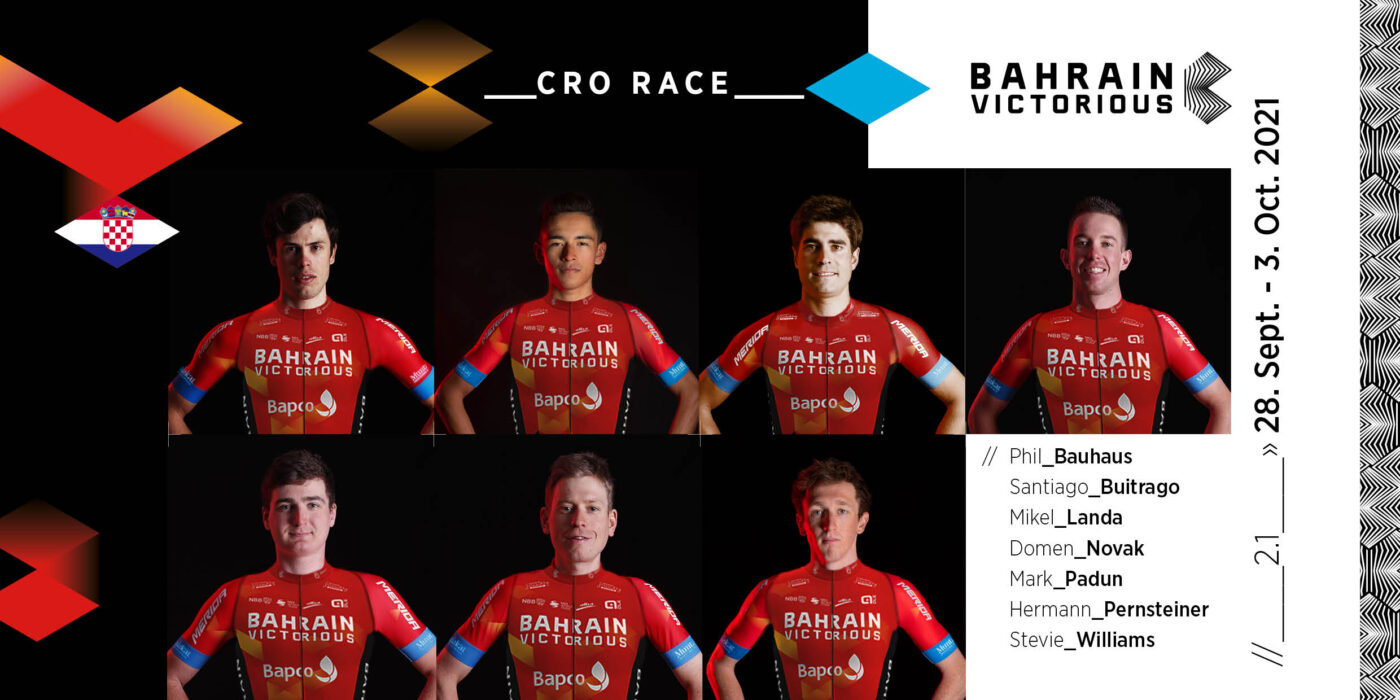 Bahrain Victorious line up for CRO Race: Mikel Landa, Phil Bauhaus, Hermann Pernsteiner, Domen Novak, Mark Padun, Stevie Williams and Santiago Buitrago.