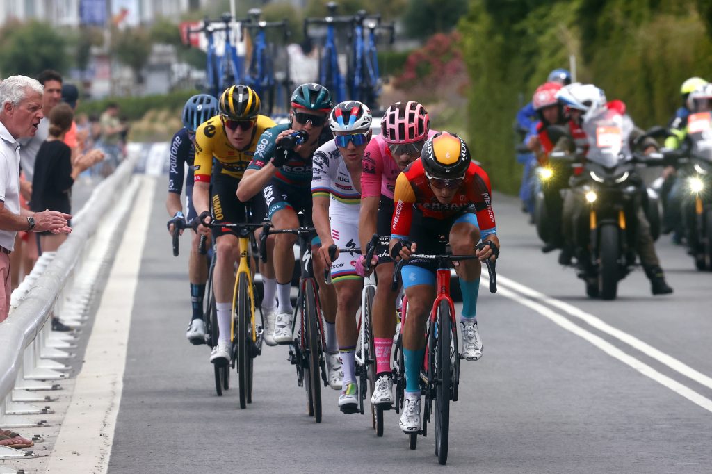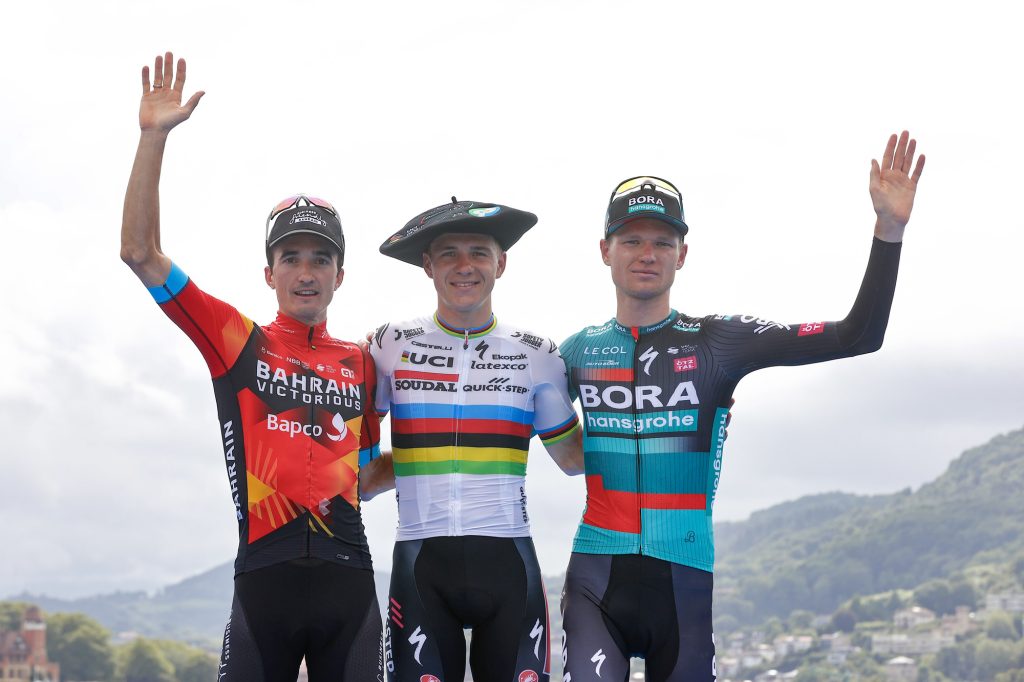 73 kms from the finish, on the Erlaitz, the eventual top three went away with Alberto Bettiol (EF). Working well together they soon quashed any hopes the peloton had of winning the Txapela, despite a strong chasing group. When Remco increased the pace on the steepest and most daunting sections of Murgil, Vlasov couldn’t hold on, but Bahrain’s Bilbao would not be shaken off.