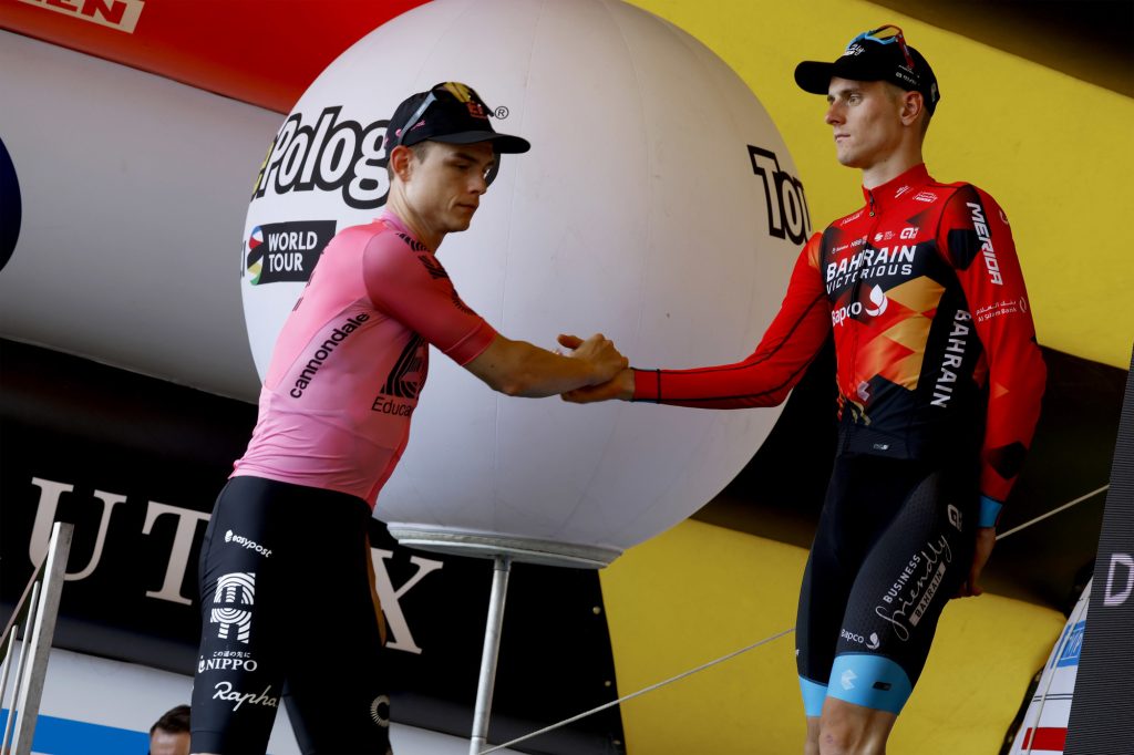 Nonetheless, a toned-down sprint did take place, won by Marijn van den Berg (EF). Michal Kwiatkowski (Ineos) followed, but was soon passed by Mohorič and João Almeida (UAE).
