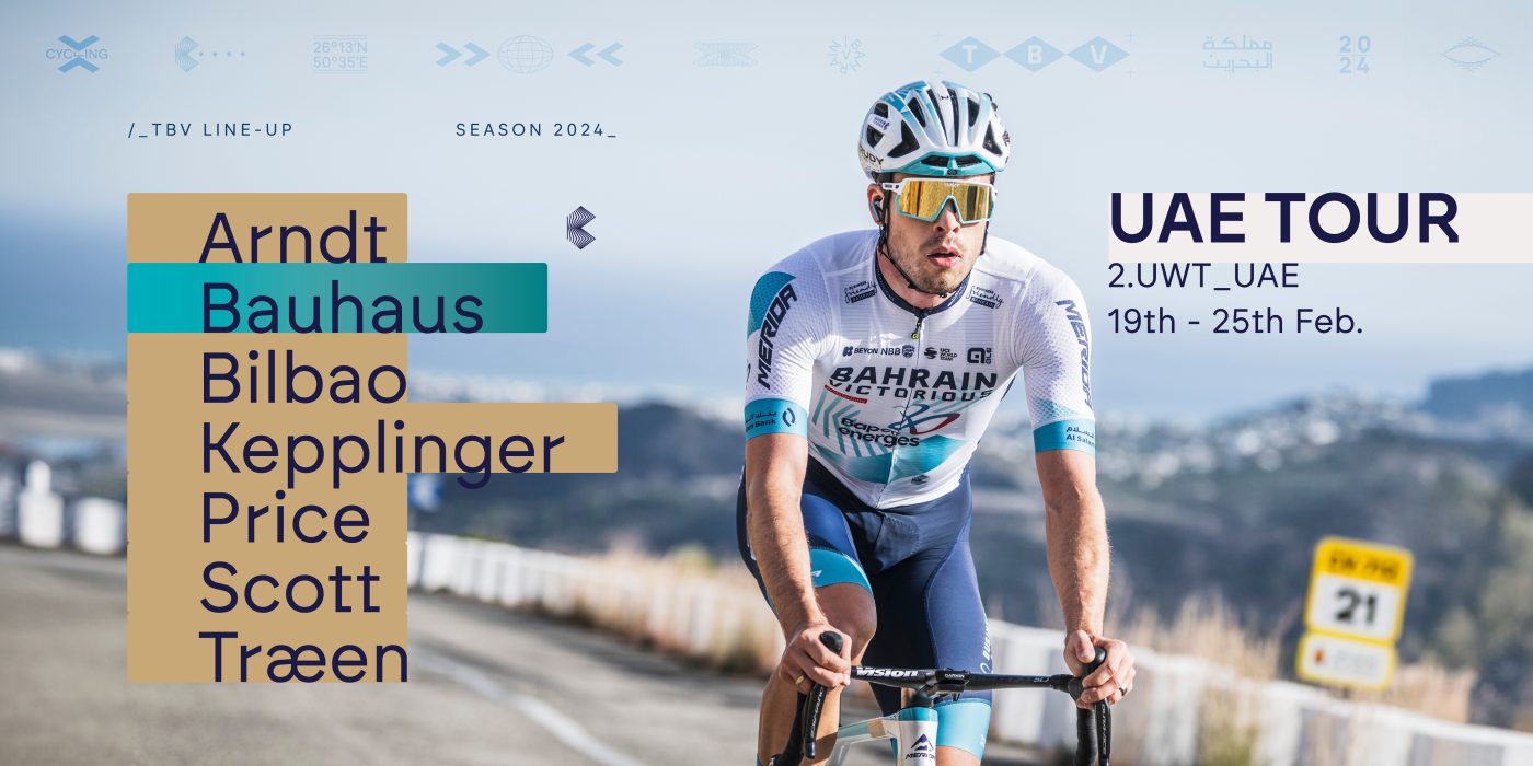 Team Bahrain Victorious is set to take on the only WorldTour race in the GCC, the UAE Tour. A strong lineup is led by Pello Bilbao for the seven-stage race taking place from February 19 to February 25.