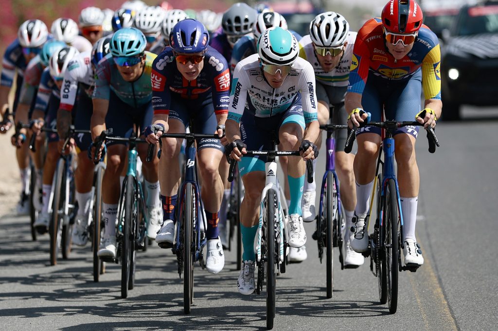 UAE Tour 2025 – 7th Edition – 7th stage Al Ain Hazza Bin Zayed Stadium – Jebel Hafeet 176km – 23/02/2025 – Pello Bilbao (ESP – Bahrain – Victorious) – Echelons – photo Luca Bettini/SprintCyclingAgency©2025