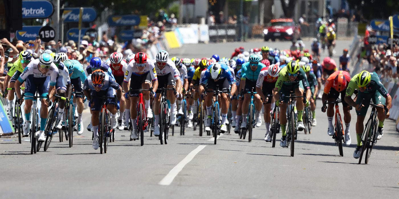 Phil Bauhaus put in a solid sprint on the opening stage of the WorldTour 2024 season at the Santos Tour Down Under finishing second. The German rider positioned himself well and profited from the acceleration of the Bora-Hansgrohe lead-out train, beating a number of the favourites to the line, but could not catch the eventual stage winner Sam Welsford (Bora – Hansgrohe).