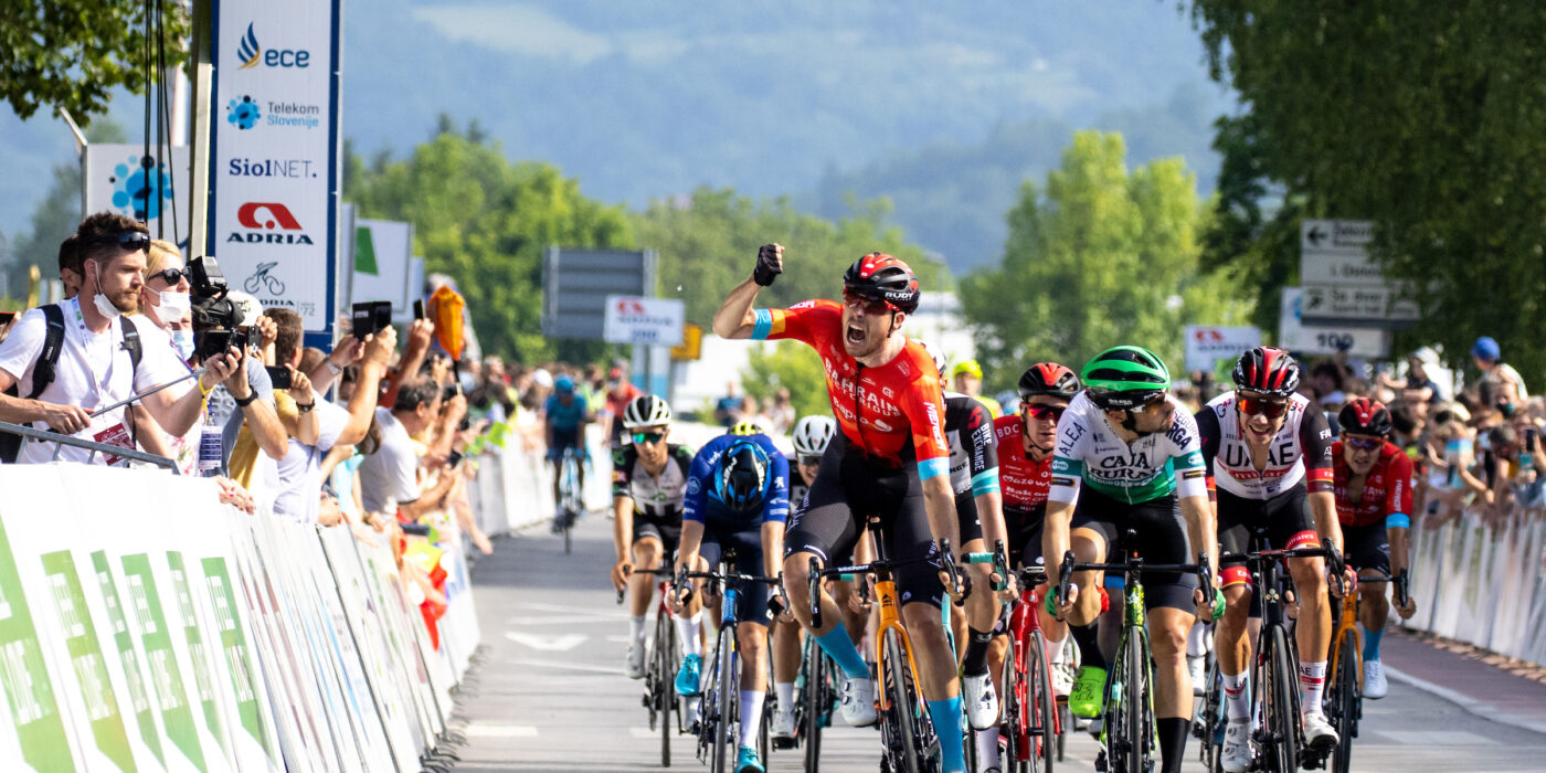 On the opening 151.5 kilometre stage in Slovenia, Phil Bauhaus, and his teammates, showed Team Bahrain Victorious’ strength. The race started in Ptuj, and it took riders through the hilly land of Štajerska to Rogaška Slatina. Team Bahrain Victorious controlled the race from the start, managing the day’s breakaway of seven riders, who were caught with the help of Jan Tratnik a few kilometers before the technical sprint in the final.