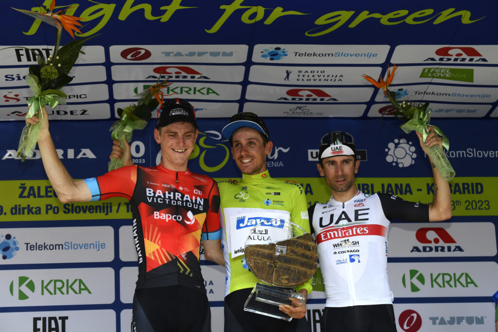 Tour of Slovenia 2023 – 29th Edition – 5th stage Vrhnika – Novo Mesto 142,6 km – 18/06/2023 – Filippo Zana (ITA – Team Jayco AlUla) – Matej Mohoric (SLO – Bahrain – Victorious) – Diego Ulissi (ITA – UAE Team Emirates) – photo Tommaso Pelagalli/SprintCyclingAgency©2023