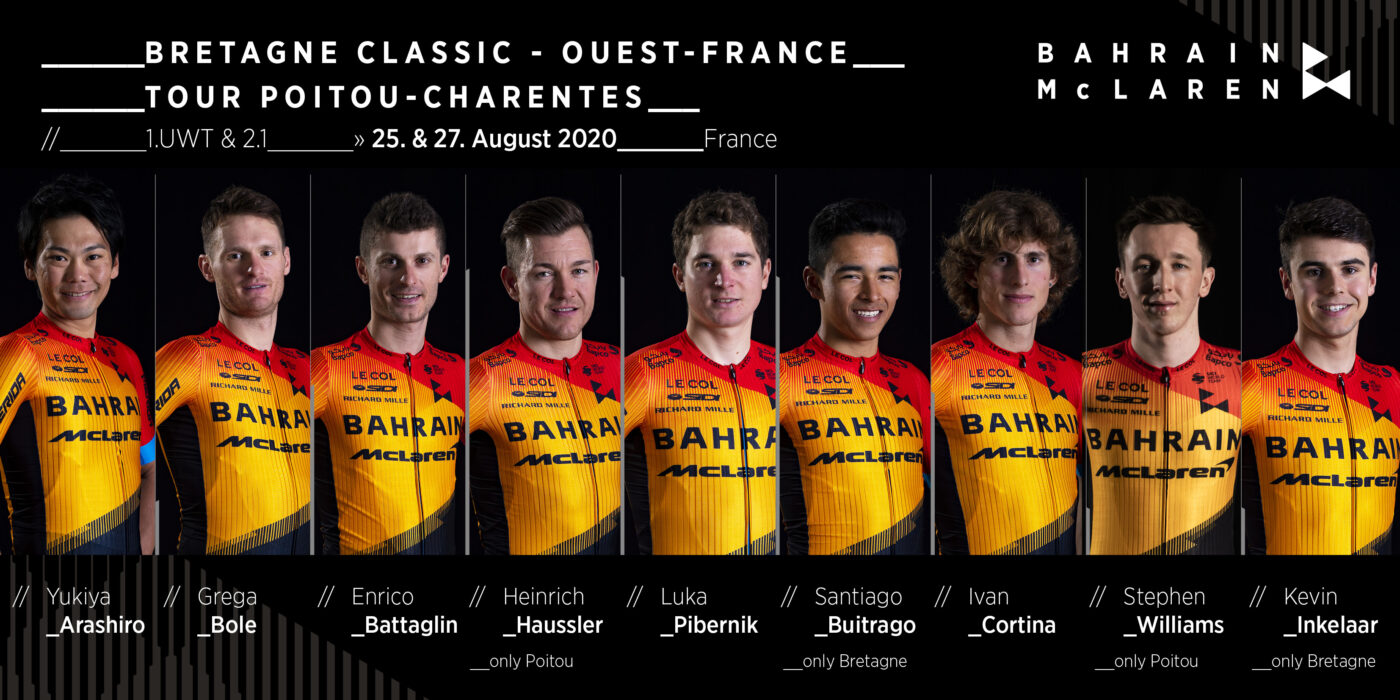 Monday, 24th August 2020 – Team Bahrain McLaren is heading to France not only for the ‘Le Tour de France’ this week. Two more races are scheduled for our team on the French roads in the next few days. A beautiful one-day challenge in the heartland of French cycling is ahead of our team on 25th August. The riders in the line-up for Bretagne Classic – Ouest France are in perfect shape and looking forward to the race.