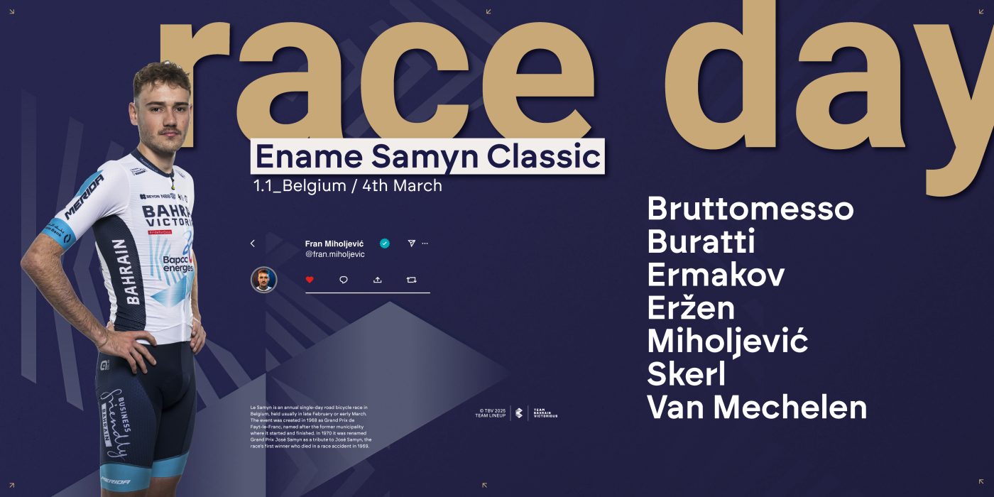 Team Bahrain Victorious heads to Ename Samyn Classic (March 4, 2025) with a young squad, averaging just 21 years old, eager to test themselves on the 199.1 km course. Starting in Quaregnon, the race features several punchy climbs and cobbled sectors before the demanding finish in Dour.