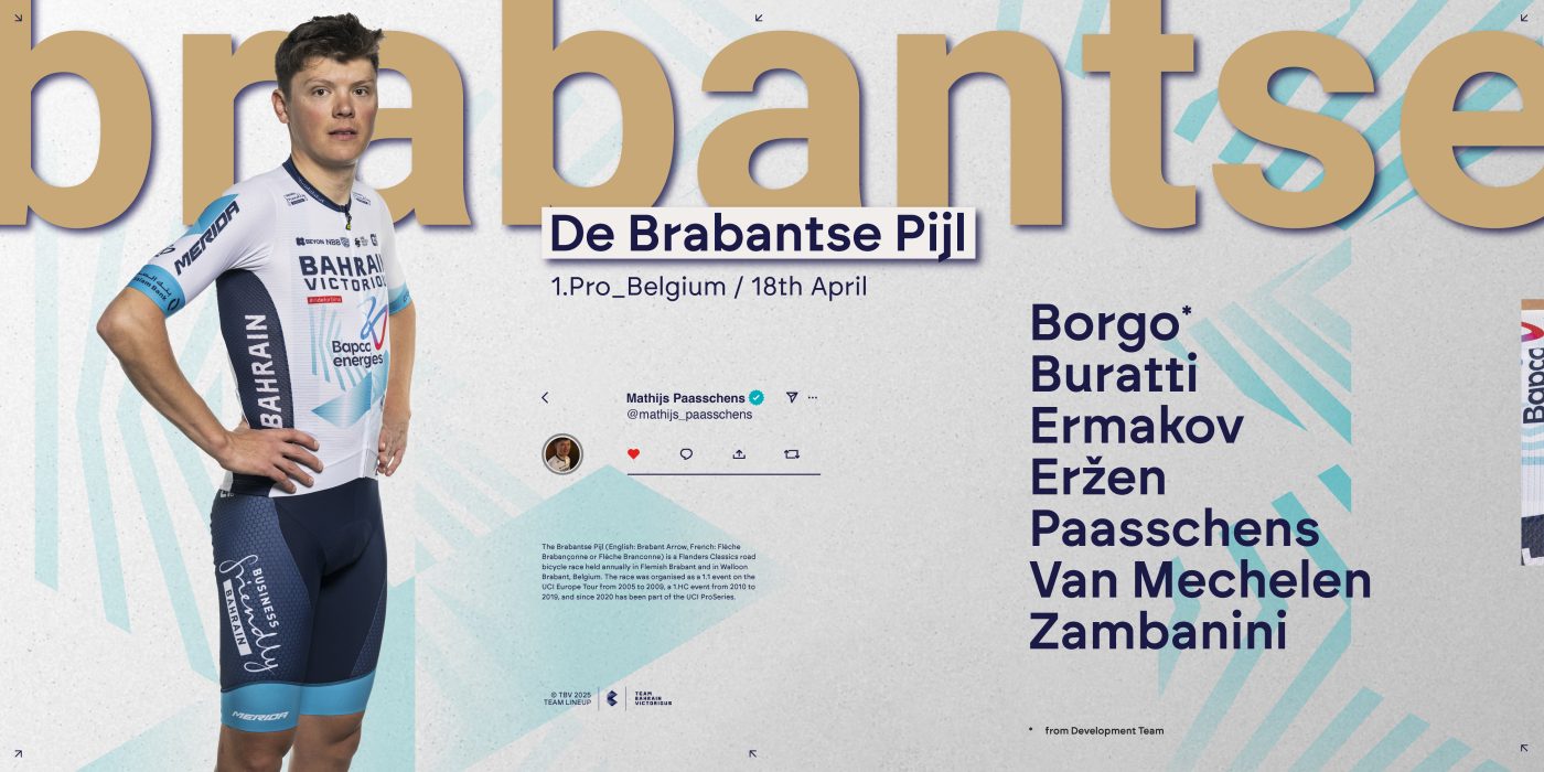 Bahrain Victorious lines up at De Brabantse Pijl with a young lineup ready to take on one of Belgium’s most unpredictable and technical one-day races. Known for its blend of short, punchy climbs, twisting roads, and relentless rhythm, De Brabantse Pijl serves as the perfect bridge between the cobbled monuments and the Ardennes week.